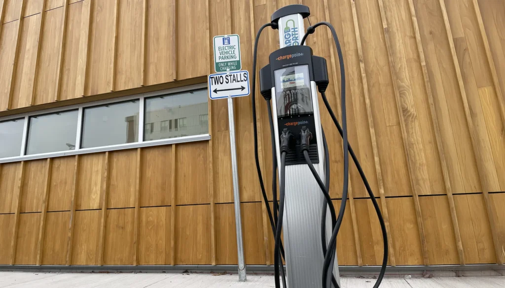 Curbside EV charging stations, typically located in the public right-of-way, provide charging that is accessible and available to the public. These stations are especially important in high-density areas and near multi-family buildings, where private parking and charging are limited.