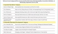 Richmond wins in the Community Planning & Development category, Nanaimo wins the Corporate Operations award and Telkwa and School District 54 receive the Public Collaboration award. Sparwood, Saanich, Metro Vancouver and Campbell River receive Honourable Mentions.