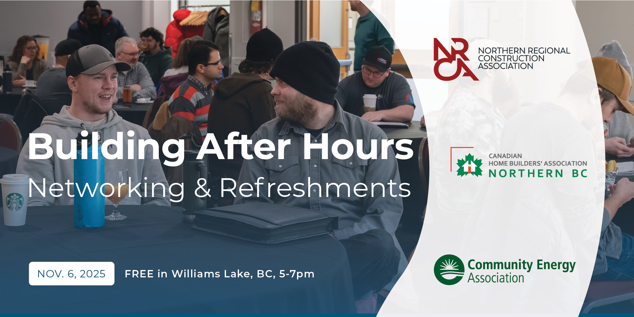 This in-person event is brought to you by the Canadian Home Builders’ Association of Northern BC, the Northern Regional Construction Association, and the Community Energy Association — coming together to celebrate and strengthen our vibrant construction community.