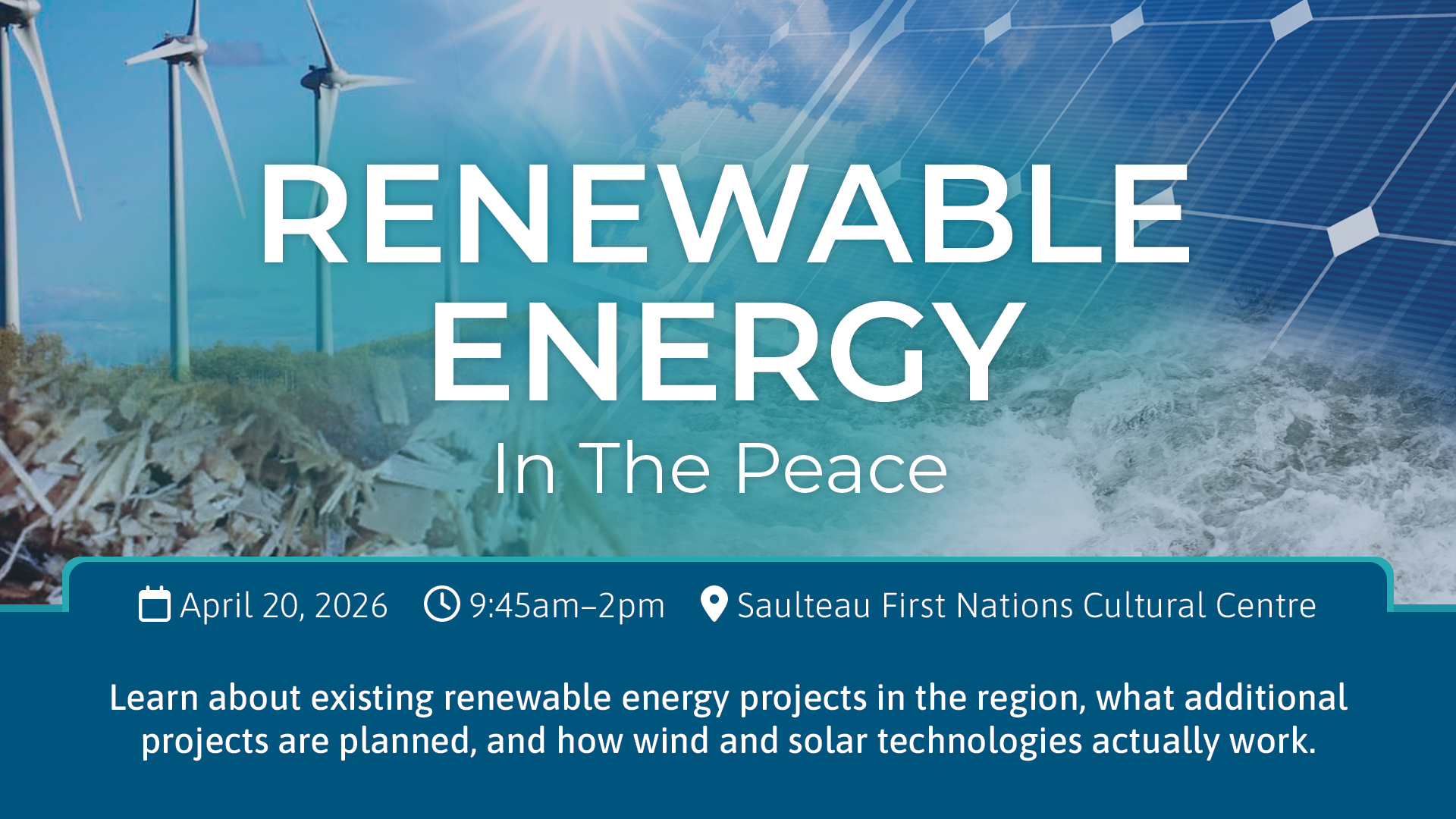 This event is about sharing information, having conversations, and strengthening the renewable energy community in the Peace. Attendees will include representatives from communities, industry, education and research, utilities, regulators, and other key organizations.